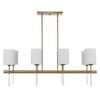 Elevate your space with the Awyr 8 Light Linear Chandelier, a refined blend of traditional elegance and modern simplicity. Designed in an elongated silhouette ideal for dining tables or kitchen islands, it features a warm brass finish paired with slender clear acrylic accents that create a graceful contrast.