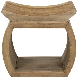 Save a seat for a guest or provide a spot to kick up your feet with a modern wood accent stool. The backless design from Uttermost features a curved seat and convex sides that create an open base. Its airy character is complemented with reclaimed elm wood construction in a natural finish, offering an earthy final touch in your den or living room.