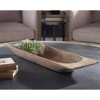 An iron band adds stability and charm to the reclaimed wood featured in this traditional rustic dough tray. From Uttermost, it features reclaimed wood construction in a natural finish that offers organic character to a dining or console table. Modeled on a classic Indian dough tray, this decorative piece is perfect for a centerpiece.
