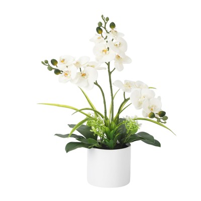 Uttermost Earthbound Orchid With Vase, 32"W x 44"H x 12"D, White and Brown, Glass and Fabric, Contemporary Botanical Accent