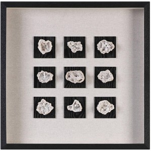 Allow this contemporary wall art to add personalized flavor to your home with its fir wood shadow box construction and authentic geodes in natural hues design.