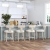 The Uttermost Idris White Counter Stool combines contemporary style with practical functionality. Upholstered in white fabric with foam cushioning and supported by a sturdy rubber wood and pine frame, this counter stool adds comfort and elegance to any indoor space.