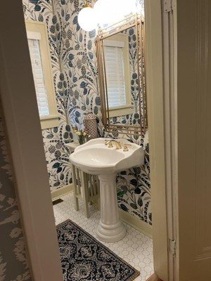 Great looking mirror! It is attractive, well made, and fits the space in the bathroom that where we hung it. Very happy with our purchase.