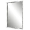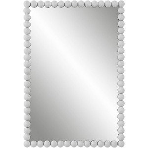 Ideal for use as a vanity mirror or hallway accent, this sleek wall mirror design comes from the Uttermost brand. The design features a fun visual look with metal frame decorated with round dots in a crisp white finish. The rectangular mirror shape fits nicely over a bath sink or hallway table.