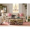 The lamp is gorgeous on the third floor of my beach home. I purchased large blue pillows with coral colored fish and silver streaks. The shade on this lamp helps to pull together with the pillows and the blue/brown porcelain looking base goes great with the brown sofa and huge crab picture above. I was so pleased with the classy look of the lamp. The lamp is a little pricey but construction and 3-way is worth it. The lamp arrived quickly and the packing was so good that it was a little difficult to get out.