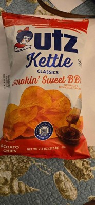 - The Utz Kettle Classics Smokin' Sweet BBQ flavored Potato Chips are made from fresh potatoes and are cooked in 100% pure peanut oil until they are perfectly crispy. This extra thick cut, crunchy potato chips is topped off with our tangy hickory-smoked barbeque seasoning that will give your taste bud
