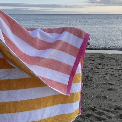 These just arrived yesterday - I bought two coral stripe (reverses to yellow stripe) with fuschia pink edging. I really didn’t need more beach towels, but I love the colors, and they were on sale, so I had to…….lol. I took them to the beach yesterday evening. So soft and comfy, generously sized, and kept me all snuggly and cozy after sunset when you get that little chill in the air. I even had someone comment on how pretty they were and asked where I got them (oh how I love Target!). I’m actually going to go get a few more, that’s how much I like them. Would love to see a pink / purple combo or a lilac purple / neon green combo (hint hint Target).
