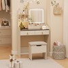 - Generous Storage Options: Organize your cosmetics and jewelry effortlessly with four open compartments and two spacious drawers. The cushioned stool also offers hidden storage, helping you keep personal items discreetly tucked away while optimizing space