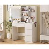 - 【Stylish and Functional Design】Perfect size vanity with mirror and lights for bedroom: 36.6”(L)*15.1”(W)*55.5”(H). Special add a convenient hair dryer holder, this makeup desk is a big surprise for wife, daughter, and friends!