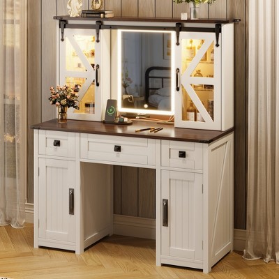 Makeup Vanity Desk Set with LED Lighted Mirror, Power Outlet, Chair, 2 Drawers & 3 Shelves - Bedroom Vanity with Adjustable Lighting, Black