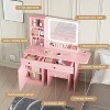 Makeup Vanity Desk Set with LED Lighted Mirror, Power Outlet, Chair, 2 Drawers & 3 Shelves - Bedroom Vanity with Adjustable Lighting, Pink