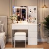 - Space-Saving Design: 36.85"L compact vanity fits bedrooms/bathrooms/dorms. Includes storage stool (15.4"x11"x17.7") that tucks neatly under desk. 4.9FT power cord reaches standard outlets, while non-marking feet protect floors. Wipe-clean surface maintains pristine appearance.