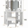 - Ergonomic, tuck-away seating: The included stool features a cushioned seat for comfortable, supported grooming sessions. Its compact design slides neatly under the table when not in use to maintain a clutter-free look; floor-friendly caps help protect hard surfaces.