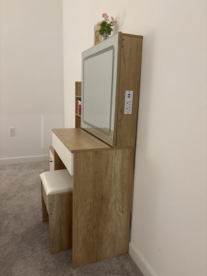 Vanity Desk with Sliding Mirror and Light, Makeup Vanity Set