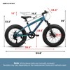 This kids' fat tire bike is a vibrant and robust choice for young adventurers, featuring a striking blue frame with bold green and black accents. It boasts oversized, knobby fat tires that provide exceptional traction and stability, allowing kids to confidently ride on diverse surfaces like dirt, grass, or even light snow.The bike is equipped with a front suspension fork that absorbs shocks from bumps and uneven terrains, ensuring a smoother and more comfortable ride for young riders. Mechanical disc brakes deliver reliable stopping power, giving parents peace of mind about safety. The multi-speed drivetrain enables easy gear shifts, helping kids tackle gentle inclines and build cycling skills.Designed with kids’ ergonomics in mind, the step-over frame is easy to mount, and the adjustable padded saddle grows with the child. Grippy handlebars and a lightweight build make it easy for kids to maneuver. Whether exploring neighborhood trails, cruising through parks, or embarking on family outdoor adventures, this fat tire bike combines durability, performance, and fun, making it an ideal companion for kids ready to embrace the thrill of cycling.
