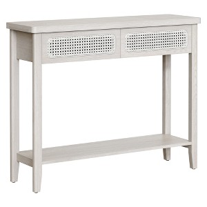 - [Ample Storage] Maintain an organized space with this narrow entryway table. It features a large tabletop to perch your often-used items or display decorations, 2 big drawers to tuck away private items, and an open shelf for shoes or storage baskets