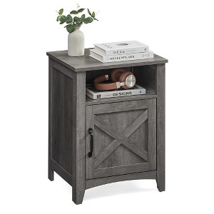 - [Farmhouse All-Rounder] Imbued with rustic hues and the charm of a barn door, this table brings farmhouse elegance to your space. Its versatility shines as a nightstand in the bedroom, a side table, or a coffee table in the living room