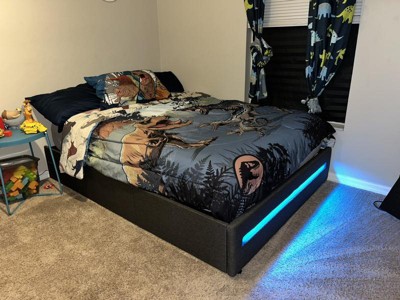 - [Color and Mode-Adjustable LED Lights] The LED lights built into the queen bed frame boast 25 colors, 6 brightness levels, 3 flashing modes, and 6 flashing rates. You can use the remote control to adjust the color and mode to create different atmospheres