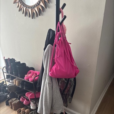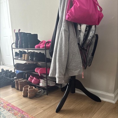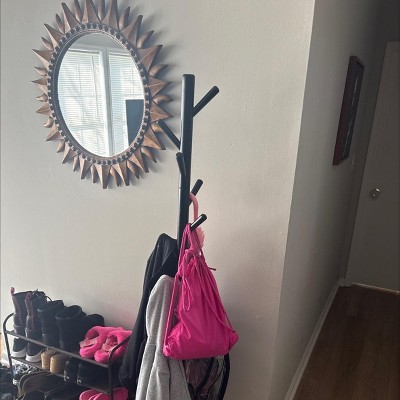 This coat rack was exactly what we needed. It doesn't take up too much room and can hold many items without tipping.