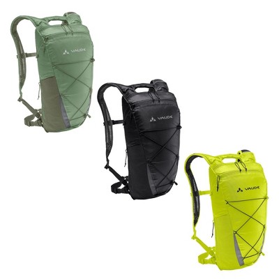 The Uphill 16 bike backpack weighing in at just 420 grams will serve you well on your next trip to the mountains. With minimalist features, the backpack is nevertheless comfortable. The main compartment with an asymmetrical opening offers a volume of 16 liters; a flat, stretchy mesh pocket and a zip side pocket provides access to your phone or snacks without having to take off the pack. The front lacing scores with triple functionality: storage for a wind or rain jacket when the main compartment is full, compression for smaller loads and attachment for trekking poles. 3 D mesh on the back and shoulder straps provides good ventilation for biking or hiking. Reflective elements integrated into the design, a hydration system port and integrated rain cover round out the features of this multi-talent. All materials have a high recycled content. The ultralight siliconized main material of this lightweight pack was made using a certified mass balance process in which pyrolysis oil is extracted from end-of-life tires and fed into a conventional polyamide production process.