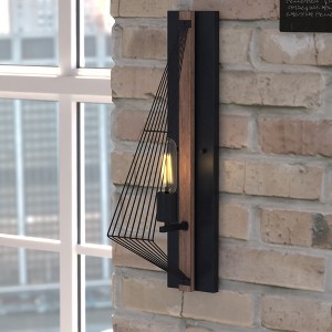 VAXCEL Dearborn 1 Light Black Oak Geometric Wire Cage Flush Wall Sconce