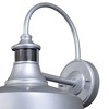 Collection: Dorado, Material: Steel, Finish Color: Satin Silver, Width: 10", Height: 20.5", Depth: 12.75", Height From Outlet Box: 7.25", Backplate Width: 4.75", Backplate Length: 4.75", Lamping Type: Incandescent, Number Of Bulbs: 1, Wattage: 60 Watts, Moisture Rating: Wet Rated, Desc: Dualux dual-level outdoor security lighting is designed to fit your lifestyle and enhance the beauty, safety, and usability of your home's exterior areas. Enjoy the comfort and convenience of continuous bright illumination during the early evening hours with automatic dimming late at night to provide soft, ambient illumination until dawn. Rest assured knowing that whenever motion is detected, on-demand bright illumination will be triggered to keep your property safe and secure. This fixture works with any dimmable incandescent or halogen bulb and many dimmable LED bulb models. You get convenience, security, and efficiency with Dualux outdoor light fixtures. Assembly Required: Yes / Back Plate Height: