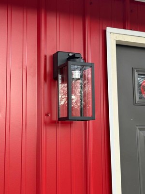 VAXCEL Lombard 1 Light Dusk to Dawn Black Contemporary Outdoor Wall Lantern with Integrated GFCI Outlet