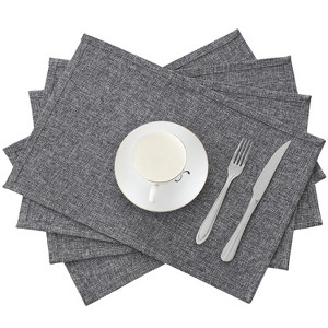 VECELO 4-Pack Solid Linen Rectangular Placemats, Dinner Mats for Indoor or Outdoor, Washable - 1 of 4
