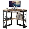 - MULTI-FUNCTIONAL DESK WITH STORAGE: Equipped with a spacious desktop and a smooth keyboard tray, this corner computer desk also features two open shelves on the side. Use it to store office item, while maintaining an organized and clutter-free workspace.