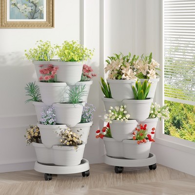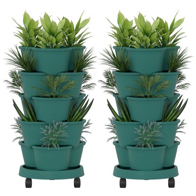VECELO 5-Tier Vertical Garden Planter, Self Watering Stackable Planter with Wheels for Strawberries, Flowers, Vegetables, Set of 1/2