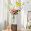 - ELEGANT DESIGN: Featuring a sleek glass body and solid natural wood base, this small vase blends modern simplicity with rustic charm, perfect for bohemian, farmhouse, or a variety of other styles of interior décor.