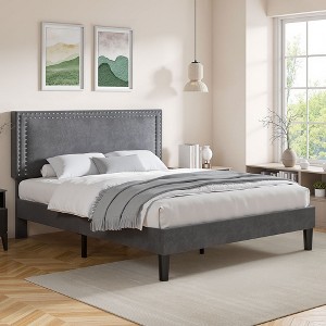 - ELEGANT VELVET UPHOLSTERED BED FRAME 🛋️ - Soft velvet fabric with chic nailhead trim creates a luxurious velvet platform bed and modern centerpiece for your bedroom décor. Perfect as a queen bed frame with headboard or stylish full bed frame.