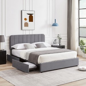 Upgrade your sleeping experience with this luxurious upholstered velvet platform bed frame with storage drawers — a perfect combination of comfort, elegance, and practicality for any modern home.