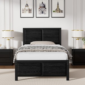 Product Name: VECELO Black Twin Size Platform Metal Bed Frame with Wooden Headboard and Footboard