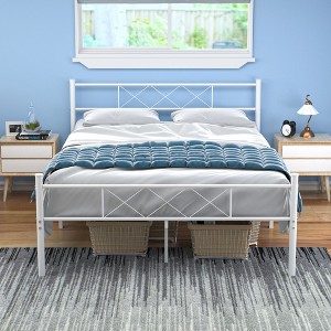 Product Name: VECELO Queen Metal Bed Frame with Headboard Modern Platform Bed Frame, No Box Spring Needed Easy Assembly, White
