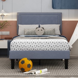 Product Name: VECELO Twin Size Platform Bed Frame with Height Adjustable Upholstered Headboard, Light Gray