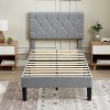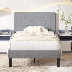 VECELO Twin Upholstered Platform Bed Frame with Button Tufted Headboard, Wooden Slat Support, No Box Spring Needed, Linen Fabric, Gray