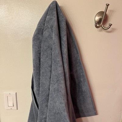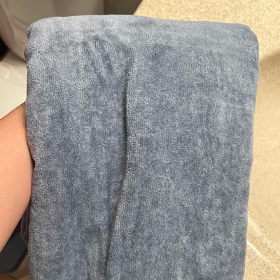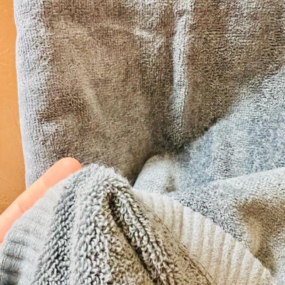 [This review was collected as part of a promotion.] I was needing some new towels for my home. I love the color blue and have been going for a coastal look for my bathroom. This towel is the perfect size. It is fairly large. I like that one side of the towel is very soft to the touch. The other side is soft but is much more absorbent. My only dislike is that the color is more grey than blue in person