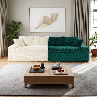 Velvet Sofa Bed with 360¡ã Side Table & Adjustable Backrest