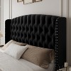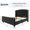 51" tall wingback headboard with button tufting and double nailhead trim.Plush velvet fabric and EVA sponge reduce noise for peaceful sleep.Sturdy steel frame with 12 wood slats and center legs supports 1000 lbs.4.9" leg height allows storage, fits mattresses 8"-15", no box spring needed.Easy assembly in 30 minutes with two adults; quick setup and convenience.