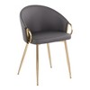 - Chic modern style shines bright with the unique design of the Claire Chair by LumiSource. With a rounded low backrest and sleek gold or chrome frame finish, it's the perfect piece for your contemporary dining area. The Claire Chair is available in lush velvet or faux leather upholstery.