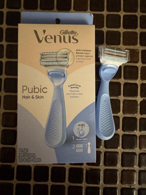Venus for Pubic Hair and Skin Women's Razor with 2 Razor Blade Refills and Shower Holder