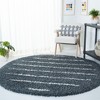 Elevate your living space with our exquisite round area rug from Egypt. With a unique combination of dark grey and ivory hues, it introduces a serene ambiance to any room. Measuring 2 feet 7 inches in both diameter and height, this piece exhibits a cozy shag Flokati style that invites you to sink your feet into pure comfort. The striped pattern adds a touch of modern flair. Power loomed from a blend of materials-61 percent polypropylene, 24 percent jute, 7 percent polyester, and 8 percent latex-this rug is crafted to be both functional and stylish. Integrate this beautiful rug into your home decor and bask in its harmonious design and texture.