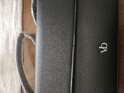 "VB" in embossed in silver on the front of the bag. This information is not pictured nor in the description. Huge turnoff for me as I was looking for solid black. I'm so disappointed because I was looking forward to this bag.