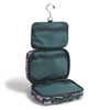 It's ideal for slipping things into your suitcase or hanging it near the vanity. Metal hanger tucks away for travel. Details: Interior features three mesh zip compartments. Wipe-clean lining. Hook for hanging. Zip closure.