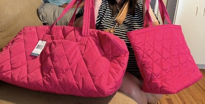Great medium size. Quilted straps for shoulder comfort. Lots of pockets and computer sleeve area if needed. Bought to take on a vacation trip for day use. Perfect size to carry things without bulk.