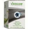 The Vericom CAT-6 U/UTP Solid Riser CMR Cable supports 10GBASE-T Ethernet based on limited distances per the standard, 1000BASE-T (Gigabit Ethernet), 100BASE-T (Fast Ethernet), 155 Mb/s ATM, 622 Mb/s ATM, 1.2 Gb/s ATM, Digital video and broadband/baseband analog video, Voice over Internet Protocol (VoIP). Category 6 is backwards compatible with Category 5e systems as well as IEEE 802.3af/802.3at and 802.3bt for PoE applications. The riser cable is designed to meet and exceed ANSI/TIA-568.2-D Category 6 and ISO 11801 Class E electrical performance requirements for frequencies up to 250 MHz. The 1,000-ft. of Blue cable in its handy pull box is constructed with 23 AWG solid conductors in a 4 pair configuration, separated with an integral cross filler to reduce crosstalk to provide maximum system performance. Vericom Category 6 CMR Cable has a nominal cable diameter of 0.228” (5.8 mm) and is is rated for multi-level non-plenum spaces.
