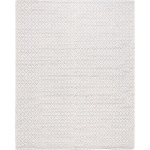 Emanating grace in an ivory base accentuated by sophisticated light blue patterns, this rug showcases a tasteful diamond lattice design that effortlessly elevates any room's aesthetic. Crafted with precision using high-quality wool, each rug is a testament to the skilled weavers of India, promising durability and longevity.