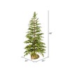 Vickerman Cedar Pinecone Artificial Christmas Tree with PE Tips. It features beautiful green Cedar foliage, pine cone accents, and is fixed in a decorative Burlap Base.