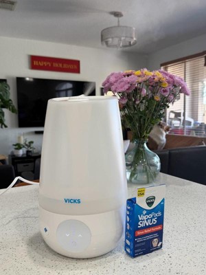 [This review was collected as part of a promotion.] Honestly I didn’t know what to expect from this product because I’ve never used a humidifier in my house before. This is lightweight and compact so it’s easy to set up and move. I did find it a little difficult to get the tank back in the base correctly, but that was most likely a me problem, not a product problem. 😂 it’s fairly quiet for a machine which is nice since we only use it at night. Using it with the Vicks sinus pads is a game changer for anyone struggling with allergies! The scent isn’t overpowering, and it gives you that relief you always find with Vicks without having to put anything on your body. If you’re in the market for a product like this or suffer from bad allergies, put this on your list to check out!